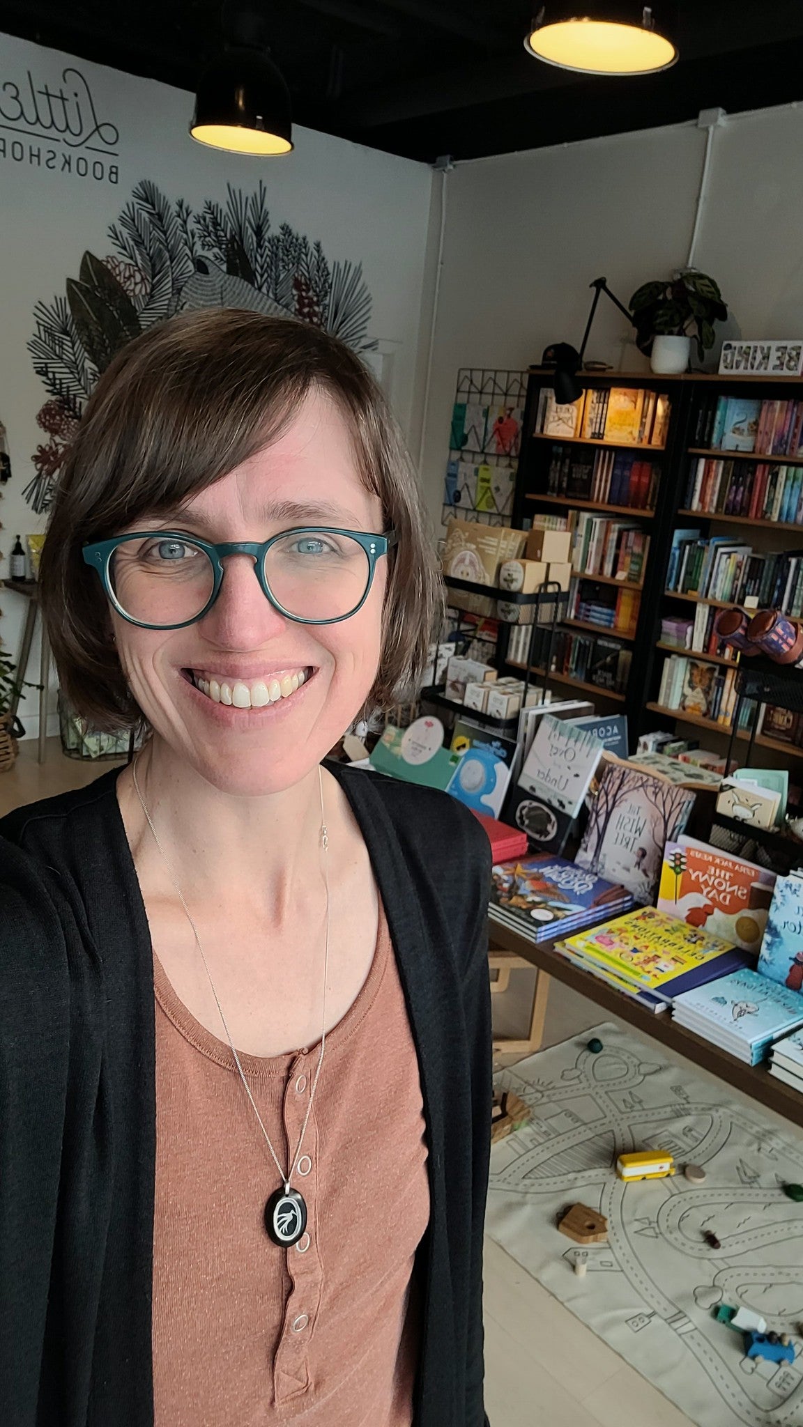 We're so lucky to have her running our local artist bookmark program, and hosting our book club at A-Frame Brewing.