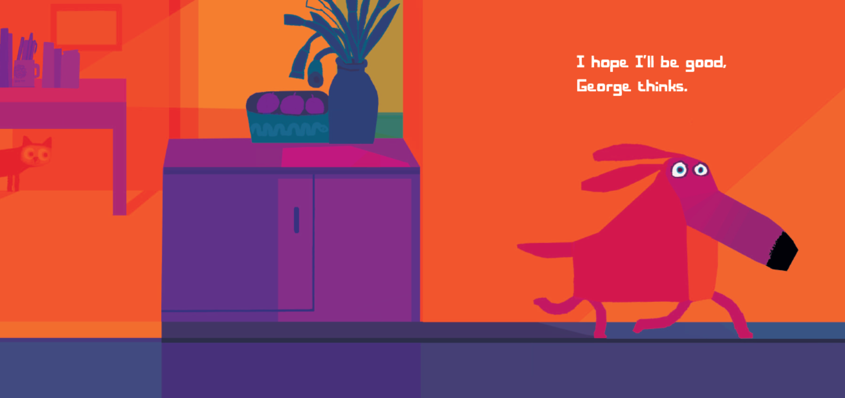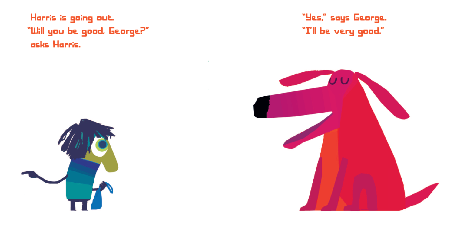 George is a dog with all the best intentions, and his owner, Harry, has all the best hopes that George will be a well-behaved dog when he leaves him alone for the day. But it’s so hard to be a good dog when there are cats to chase and flowers to dig up! Chris Haughton’s fetchingly funny story and vibrant, retro illustrations are sure to lure dog lovers of all ages—and anyone who has ever met a temptation too good to resist.
