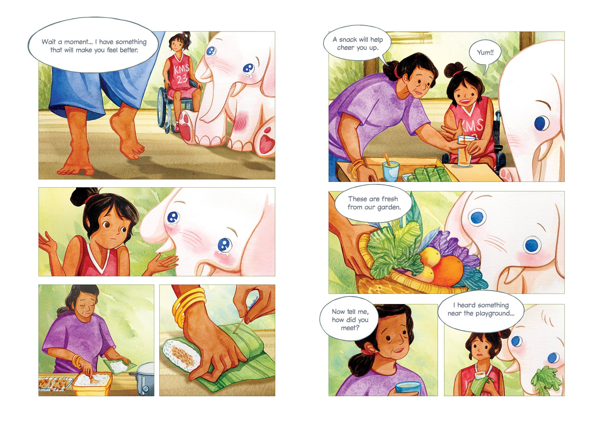 Alina Chau's Marshmallow & Jordan is a middle-grade graphic novel about a disabled, sports-loving Jordan, and the magical  elephant named Marshmallow who she befriends.
