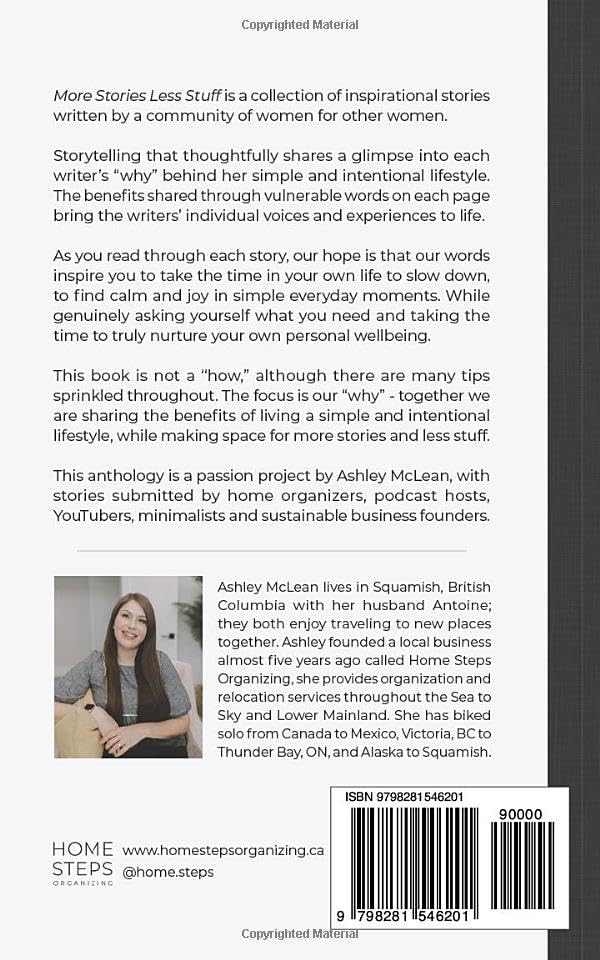 This anthology is a passion project by Ashley McLean, with stories submitted by home organizers, podcast hosts, YouTubers, minimalists and sustainable business founders.
