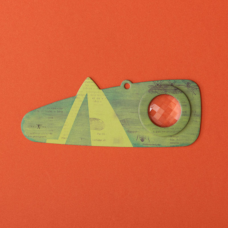 Look at the world through the eyes of a bee, a ladybird or a grasshopper with our big eye ...A special kaleidoscope made with recycled cardboard and glass and finished with plant-based colours. Measures approx 3,5 x 5 cm.