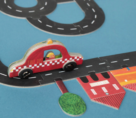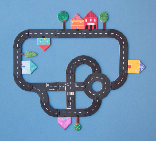 Made in Barcelona with illustrations by Can Seixanta.Includes 48 pieces: 34 roads, 6 houses, 8 trees and 2 cars. There are 11 challenges to complete.