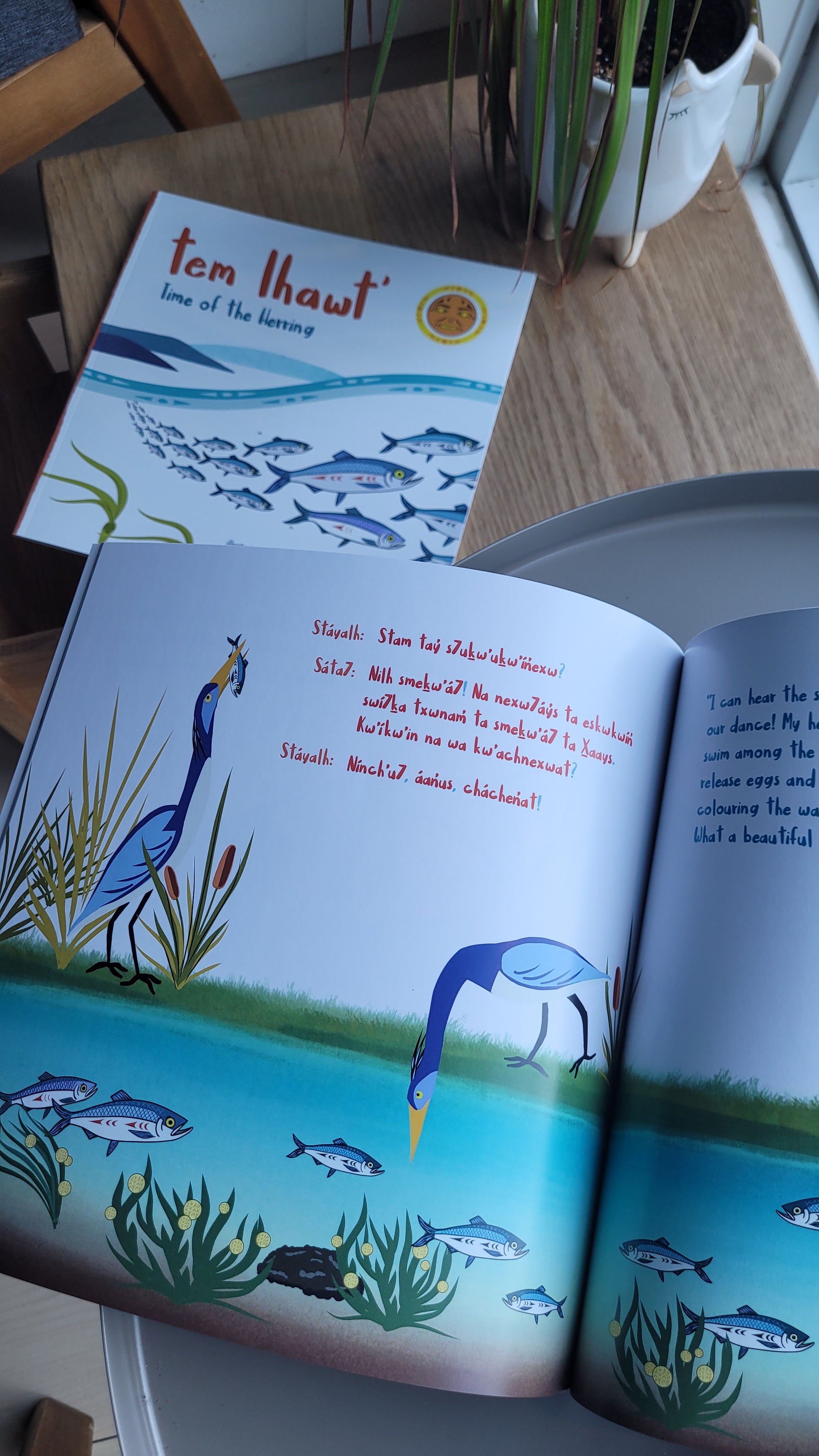 Join Harriet the Herring and her aunty as they swim up Átl'ḵa7tsem/Howe Sound for the great herring spawn! In this book, you will find two separate stories written by Welwál̓tenaat Myia Antone and Matthew Van Oostdam—one in English and the other in Sḵwx̱wú7mesh Sníchim.